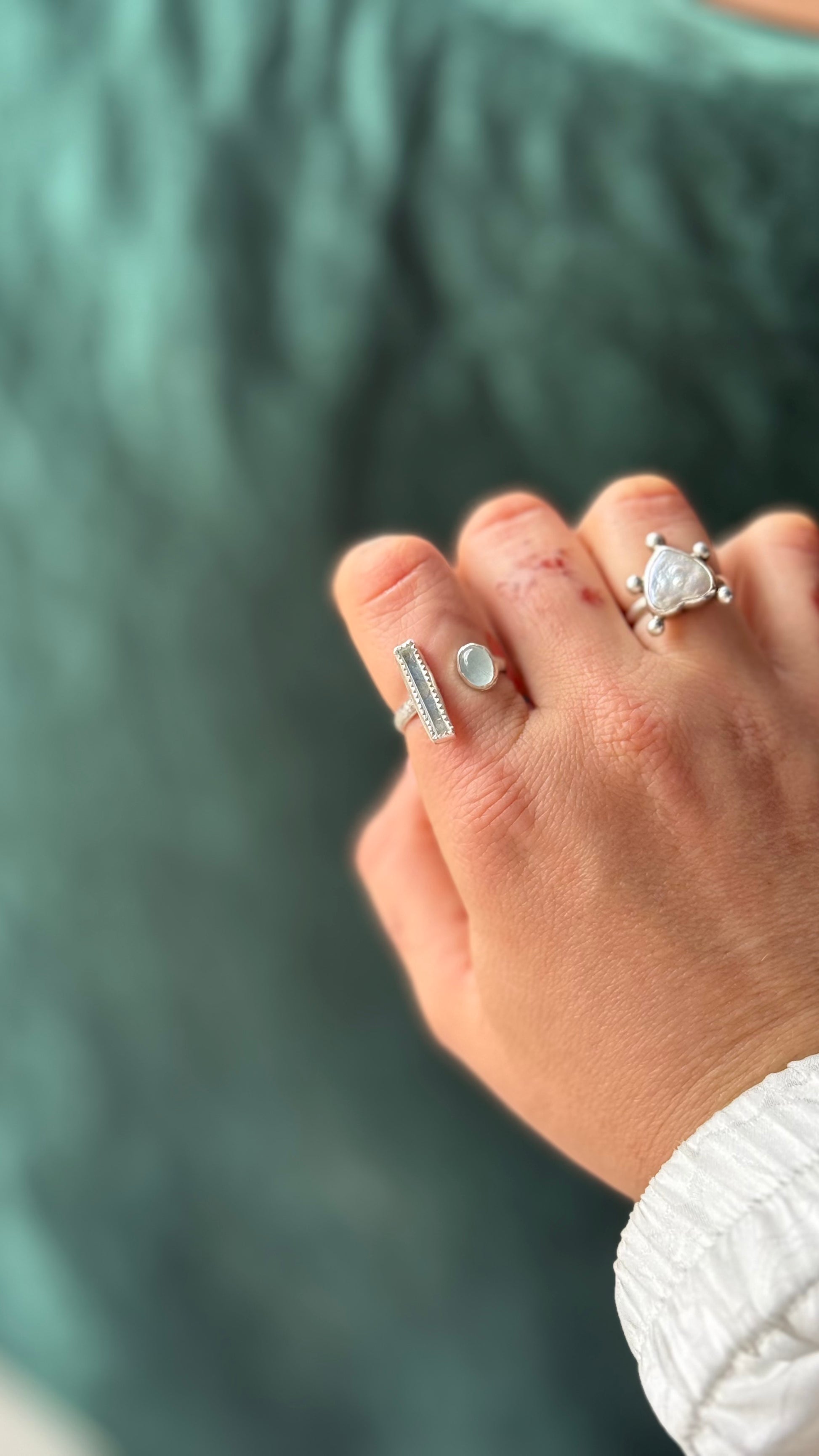 A simple yet elegant silver and aquamarine ring, made with a polished and raw aquamarine.
