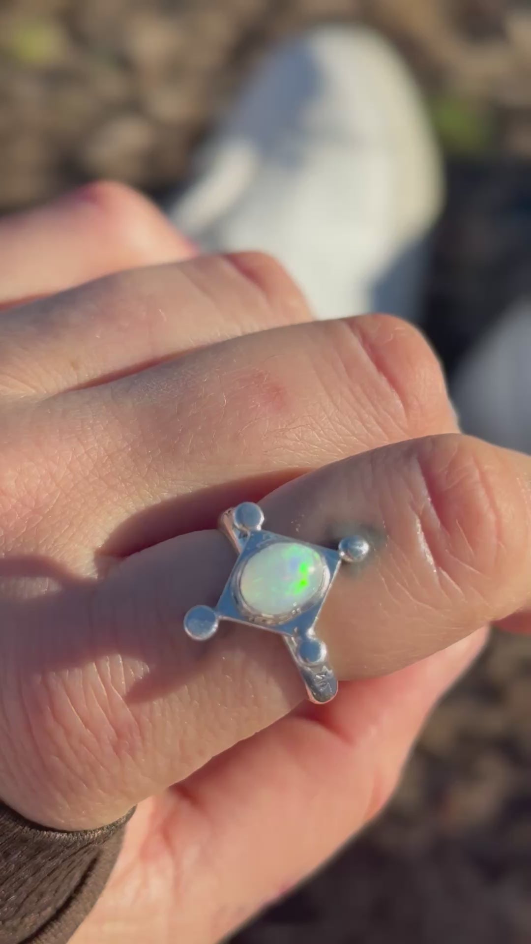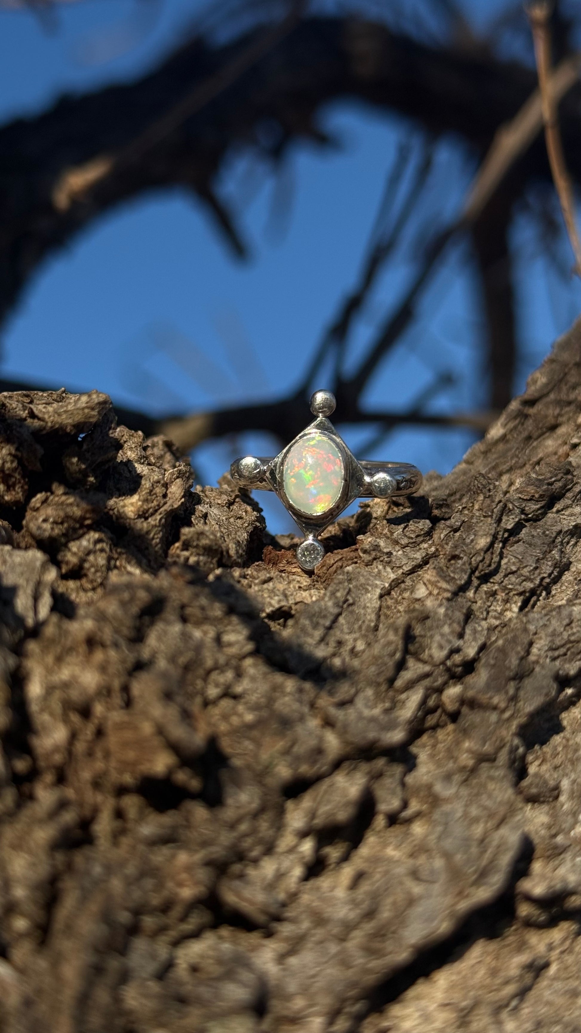 One of my newest designs and it’s so much fun, it looks like a little opal kite on your finger and has a band stamped with little stars.